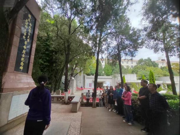 在国立西南联合大学博物馆解讲员的带领下,实训基地管理中心全体教师怀着无比崇敬的心情,在室外参观了国立西南联合大学纪念碑、国立西南联合大学原教室、国立昆明师范学院纪念标柱、“一二·一”运动四烈士墓、“梅园”、“民主草坪”、李公朴先生衣冠冢、闻一多先生衣冠冢以及镌刻有闻一多撰写的《一二·一运动始末记》的石雕火炬纪念柱等。随后,进入博物馆内参观《刚毅坚卓:西南联大历史展》,仔细聆听讲解员的介绍。该展览以西南联大历史为主线,按照时间及板块顺序共分为:《抗战烽火教育长征》《结茅立舍弦歌不辍》《文化抗战学人报国》《追求真理民主堡垒》《共赴国难情谊永存》《复员北返薪火承续》《联大人杰志业昭彰》七部分,采用现代化声、光、电陈列布展方式,展出西南联大各类档案和实物800余件,历史图片1000余张。实训基地管理中心全体教师不时驻足凝视,透过一件件文物,触摸这所伟大学府在抗战烽火中坚守教育救国的赤子情怀,在历史与现实的对话中感悟“刚毅坚卓”的联大精神,汲取奋进力量,发扬联大教师艰苦朴素,治学严谨的作风,坚持为国育才,将爱国主义的种子播撒在云岭大地。